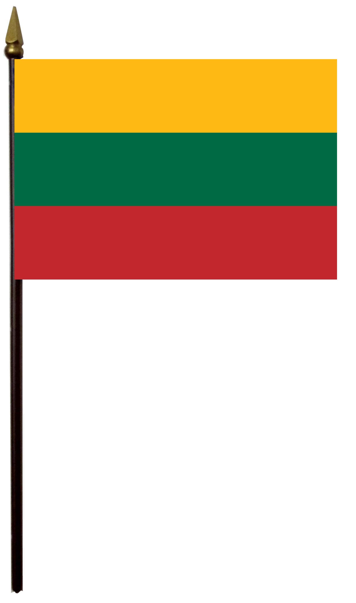 4"x6" flag comes with 11"x¼" plastic staff. gold top.