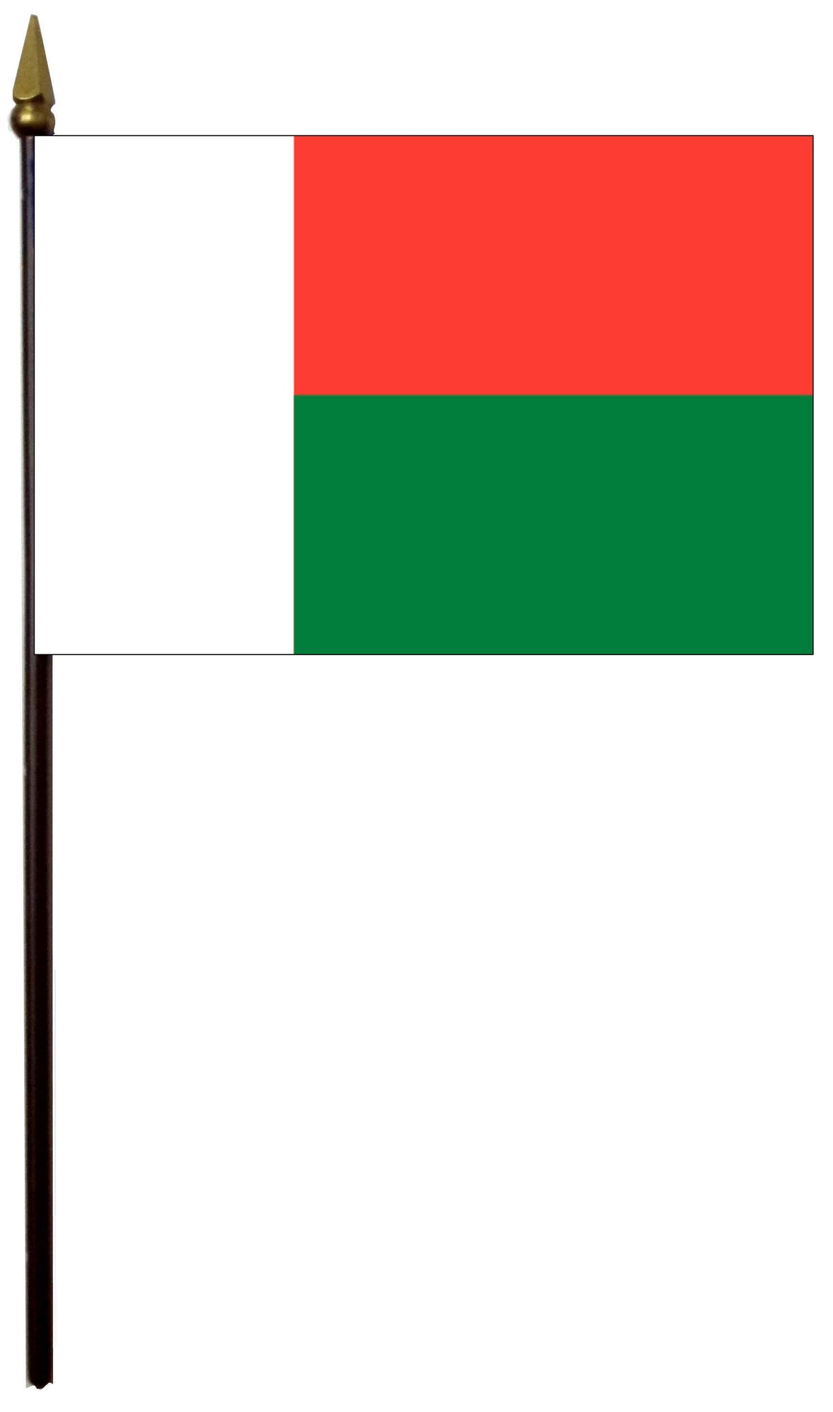 4"x6" flag comes with 11"x¼" plastic staff. gold top.