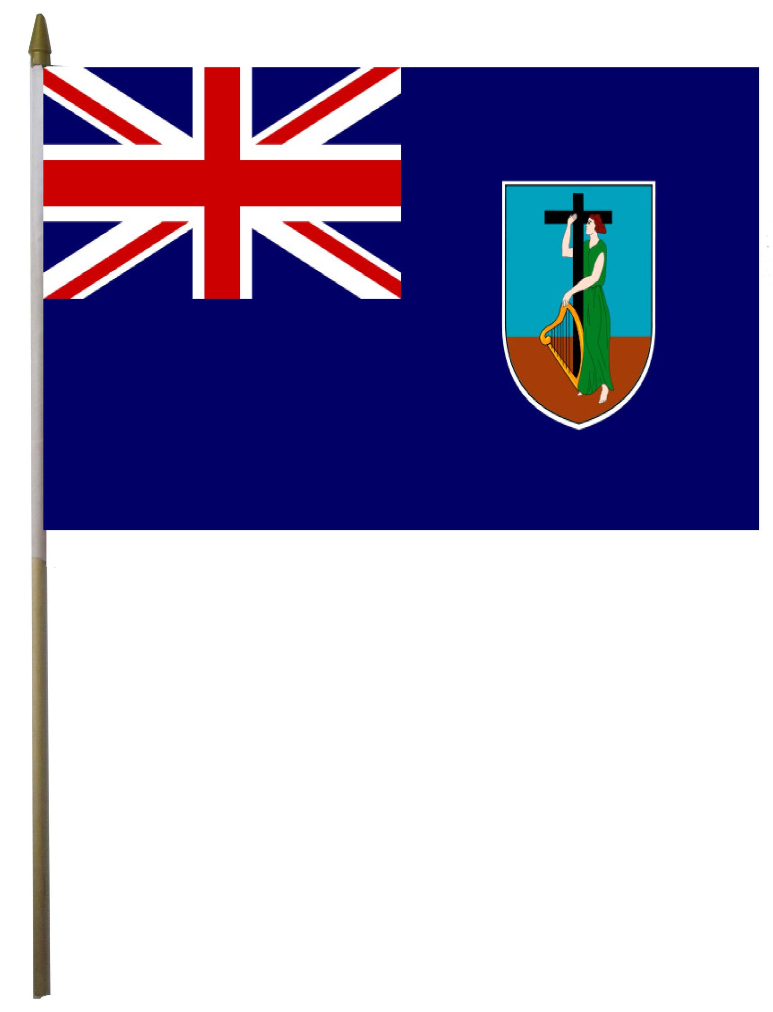 4"x6" flag comes with 11"x¼" plastic staff. gold top.