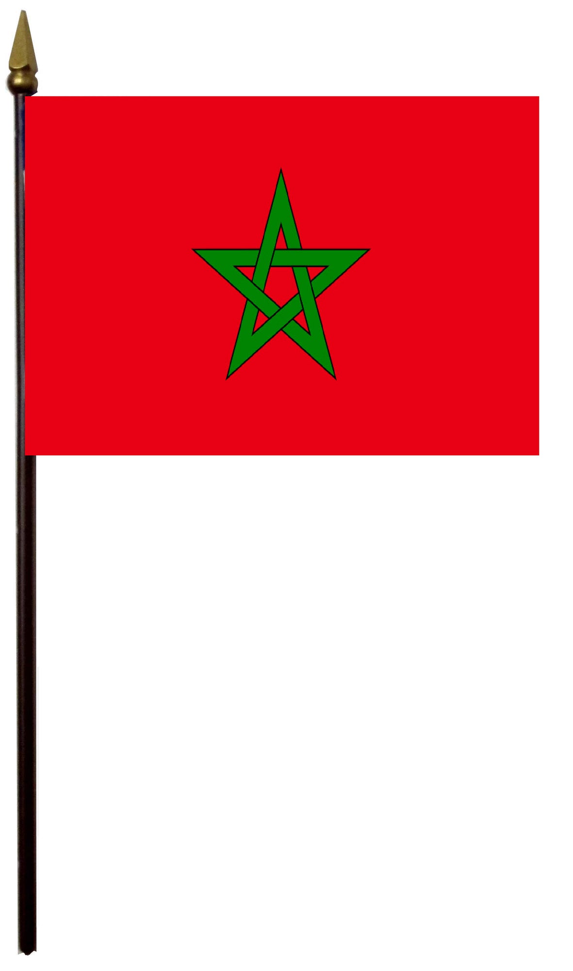 4"x6" flag comes with 11"x¼" plastic staff. gold top.