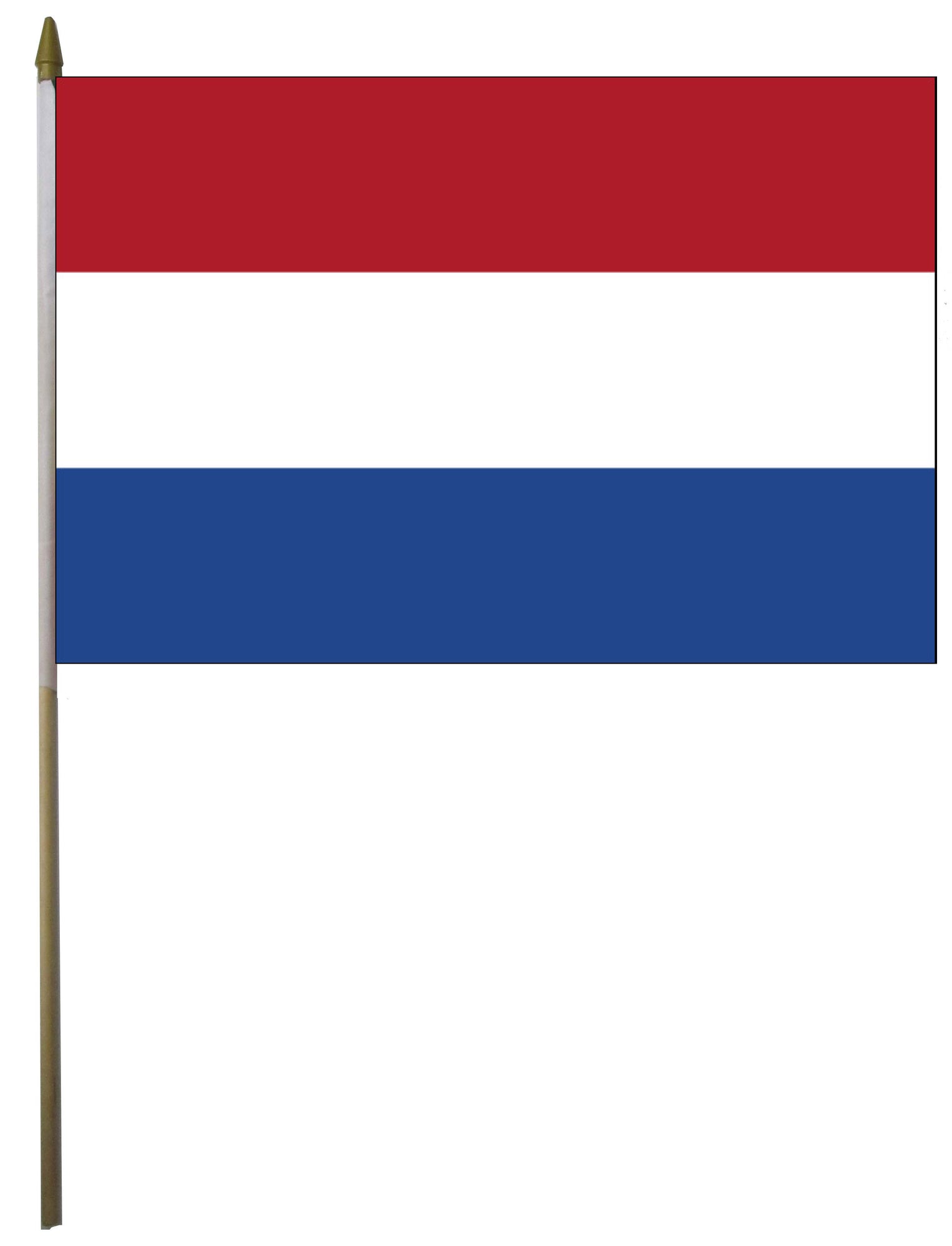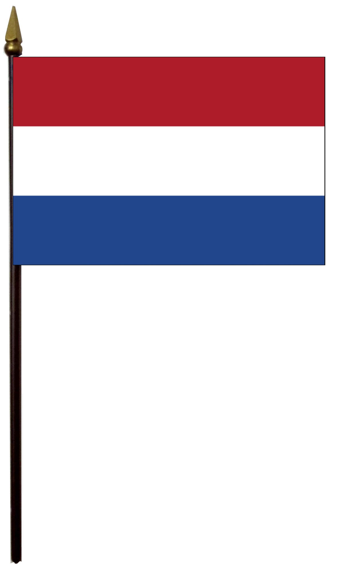 4"x6" flag comes with 11"x¼" plastic staff. gold top.